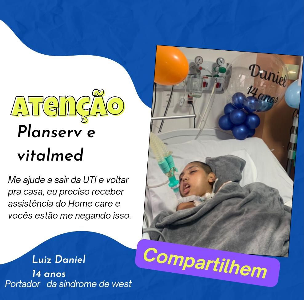 Atenção Planserv e Vitalmed, Luiz Daniel portador da síndrome de West pede socorro
