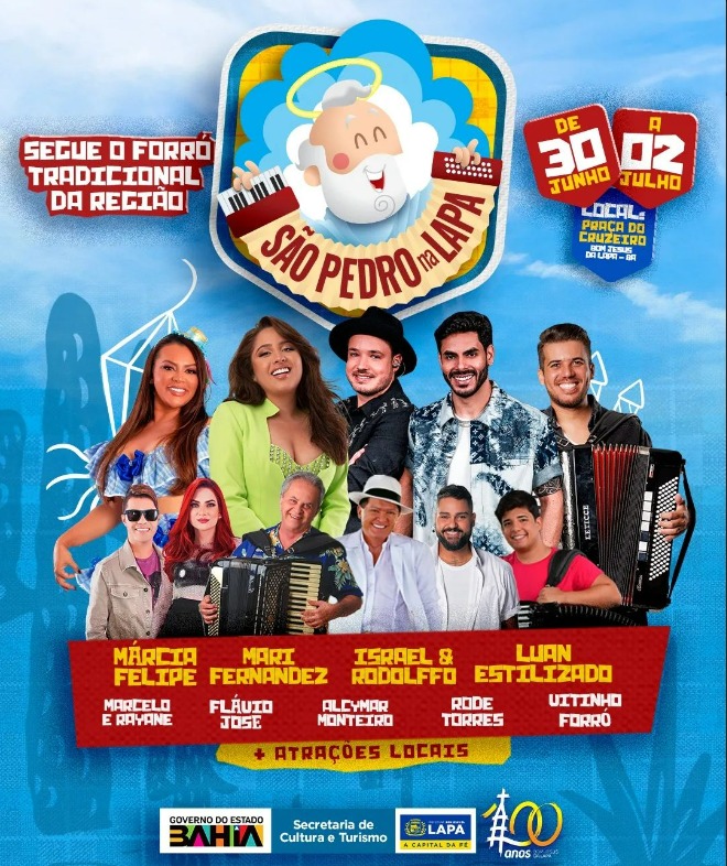 A Prefeitura de Bom Jesus da Lapa anunciou na última semana as atrações do São Pedro da Lapa 2023 . O evento que é um dos mais tradicionais da região será realizado entre os dias 30/06 e 02/07 numa grande estrutura que será montada na Praça do Cruzeiro. Há uma grande expectativa de torno do evento pelo grande público que sempre se faz presente no evento. Para suportar o maior fluxo de pessoas haverão reforços nos serviços de segurança e saúde com maior presença de agendes da Polícia Militar e Corpo de Bombeiros. Confira abaixo as atrações: