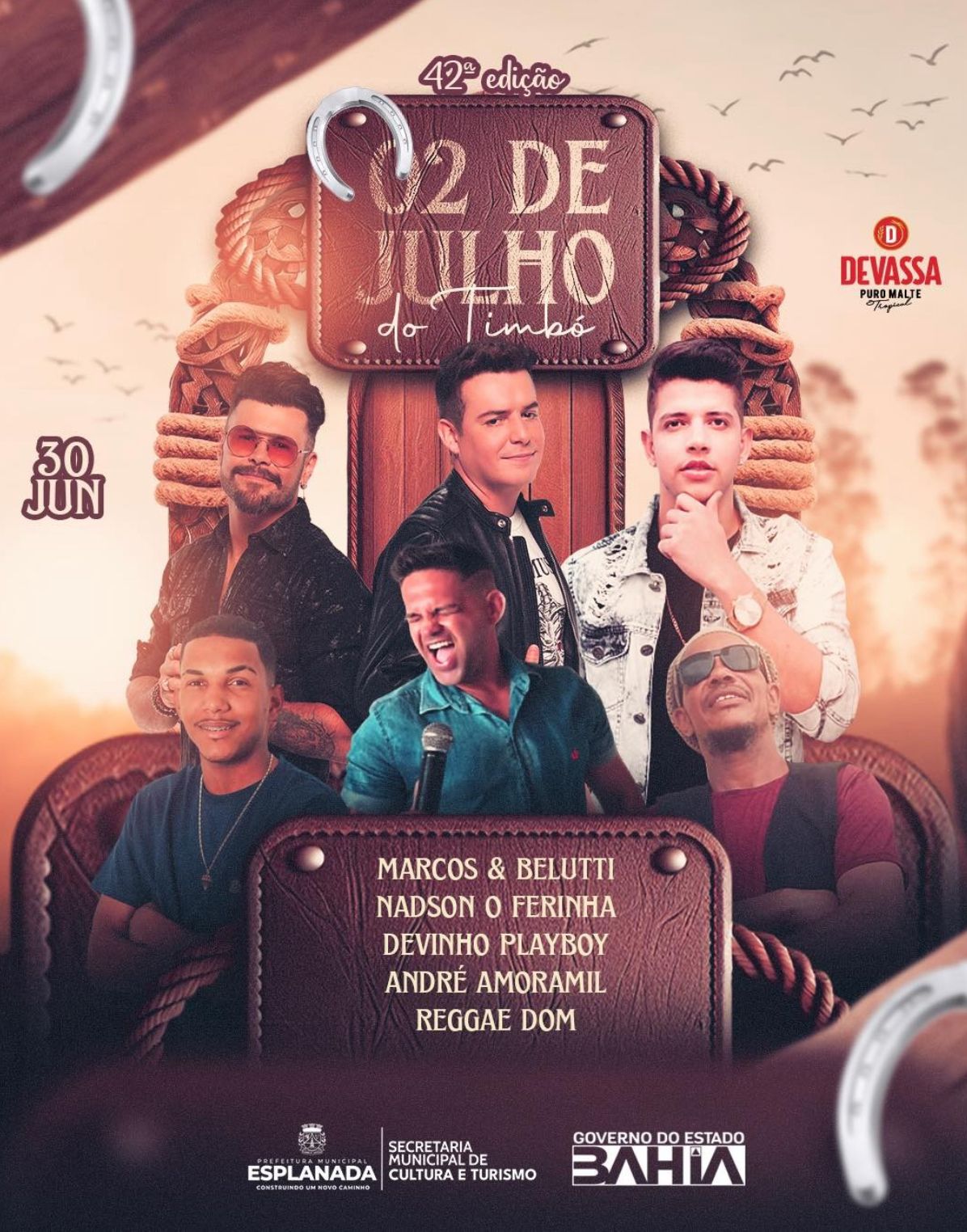 A Prefeitura de Esplanada anunciou a realização de mais uma edição da festa de 2 de Julho do Timbó. O evento que alcança a sua 42ª Edição em 2023 será realizado entre o dia 29/06 e o dia 02/07 e contará com uma extensa programação que envolve corrida de jegue, corrida de saco, quebra pote e diversas outras competições. Para animar ainda mais o evento, estão programados diversos shows de artistas nacionais e locais. Confira a programação abaixo: