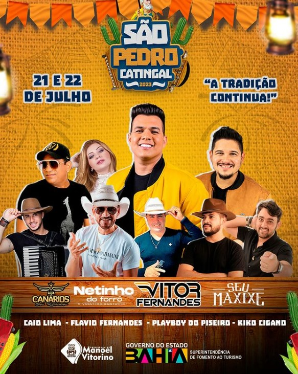 A prefeitura de Manoel Vitorino, no interior da Bahia, confirmou a grade de atrações do São Pedro de Catingal 2023. A festa acontecerá nos dias 21 e 22 de julho e promete duas noites de muita festa e atrações incríveis.