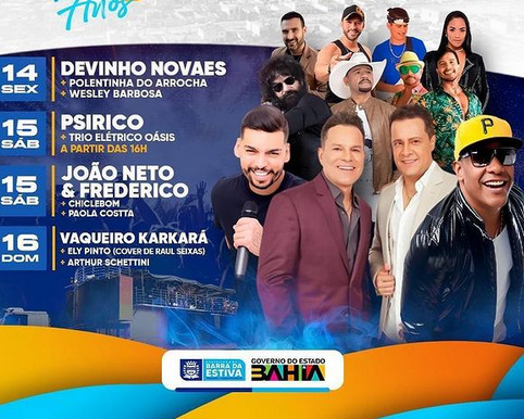 O São João e São Pedro 2023 podem ter acabado, mas em Barra da Estiva ainda tem festa para quem não conseguiu aproveitar. Entre os dias 14,15 e 16 de julho Barra da Estiva te espera. Confira abaixo a programação e não perca nada!
