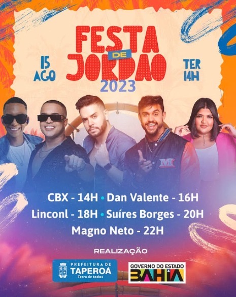 A Prefeitura Municipal de Taperoá, junto com a Superintendência de Fomento ao Turismo, tem a honra de convidar toda a população e visitantes para a tradicional Festa de Jordão 2023, no dia 15 de agosto. Este evento secular, que celebra Nossa Senhora da Boa Morte, é um dos pilares da identidade cultural do nosso município, unindo devoção religiosa e manifestações artísticas que ressaltam a história e a resistência do nosso povo.