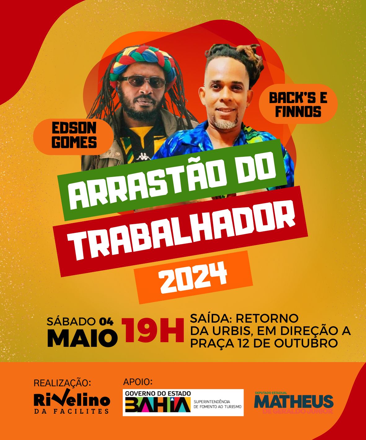 No próximo dia 04 de maio, vai acontecer o “Arrastão do Trabalhador”, com as Bandas Backs e Finos, Isaac Gomes e o rei Edson Gomes.