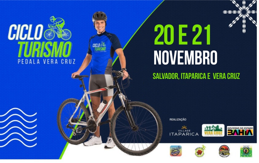 O município de Vera Cruz, na Ilha de Itaparica, sediará o 1º Cicloturismo da cidade, Ao todo, serão 30 quilômetros de pura aventura e belas paisagens com saída concentração na Praça do Jaburu, em Mar Grande, com destino ao Village Itaparica. O evento tem largada às 9h, o passeio ciclístico vai passar por vários points da Ilha com vista para o mar, a exemplo da Barraca Sombra das Amendoeiras, em Conceição, ponto turístico da Ilha de Vera Cruz. Esse é um dos pontos do roteiro mais preferidos pelos ciclistas.
