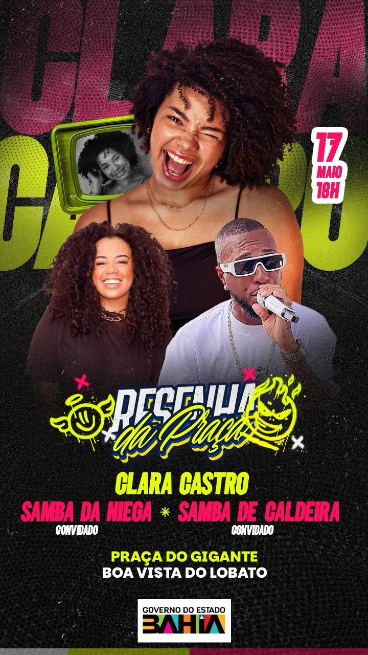 ATRAÇÕES: Clara Castro, Samba do Niega, Samba de Caldeira