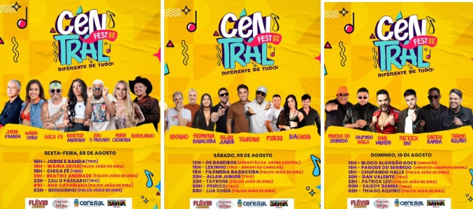 O Central Fest 2025 promete agitar a cidade de Central-BA. Com uma programação repleta de música e cultura, o evento começa hoje (08/08/2025), às 16h, com o Trio Elétrico Mega Lidder abrindo as apresentações.