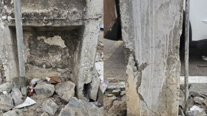 Cal fez questão de sinalizar que os postes estão em péssimo estado de conservação, apresentando deformações estruturais na base, justamente em um ponto crucial para manter os componentes de pé. Em alguns pontos é possível ver as ferragens que ficam na parte interna dos postes. Para piorar a situação, em um deles está fixado um transformador, um dispositivo elétrico que pesa cerca de 300 kg.