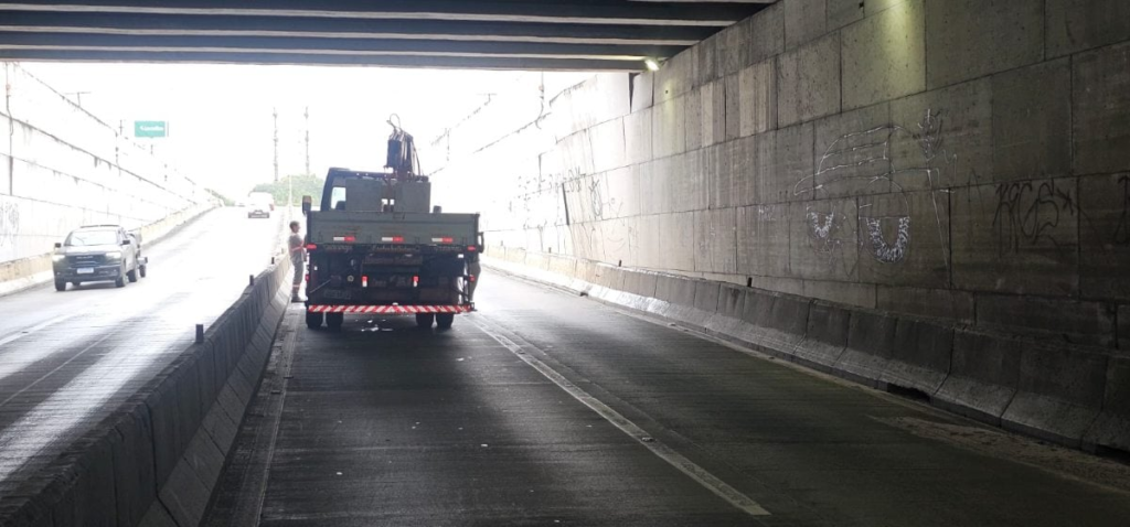 Na manhã desta sexta-feira (21) foi detectado que dentro do túnel, na mão que vai sentido Avenida Presidente Dutra, as placas da parede estavam se soltando da armação de ferro que as prendia, gerando riscos aos condutores.