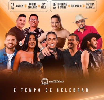 Sítio do Mato vai parar! Está chegando o momento de vivermos noites inesquecíveis, com muita música, alegria e aquela energia que só o nosso povo tem. Prepare o seu melhor sorriso e chame a galera, porque a nossa praça vai virar o palco de grandes emoções!