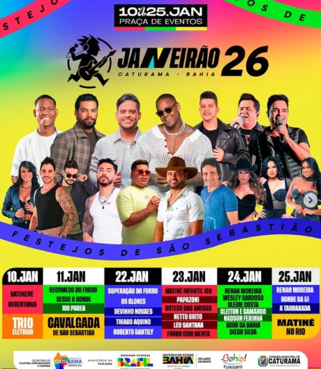 Prepare-se para viver o maior Janeirão da história! Com o apoio fundamental do Governo do Estado da Bahia, através da Sufotur, a Prefeitura de Caturama preparou uma estrutura de alto nível,com grandes atrações