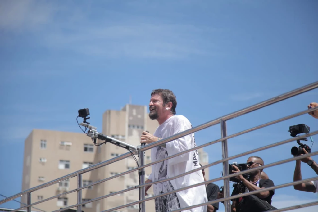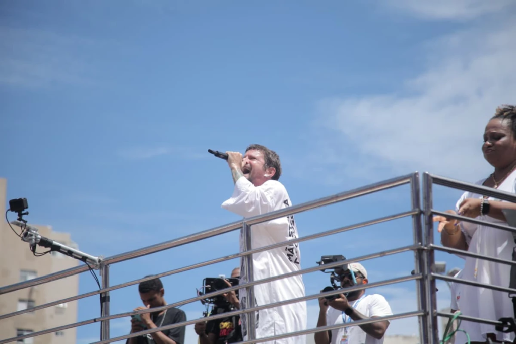 O artista destacou ainda que, nesses 12 anos desfilando sem cordas, um aspecto chama a sua atenção. “Não tem violência, não tem nada. É uma pipoca que aceita todo mundo, que a gente se respeita, se protege, é uma delícia. É um sonho de igualdade. Sabe aquela utopia? o sonho de igualdade a gente vive aqui nessa tarde”, avalia o artista que estreou no Carnaval de 2026 usando uma camisa com a imagem da ialorixá Mãe Stella de Oxóssi, que morreu aos 93 anos, no final de 2018.