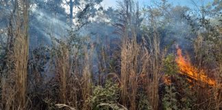 Incêndio atinge área de vegetação e chamas se aproximam de imóveis...