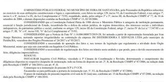 Piritiba: MPF instaura inquérito para apurar licitação de material de expediente