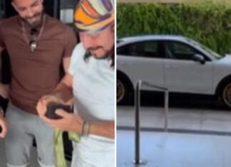 O cantor apareceu descalço e sem camisa na concessionária para escolher o novo carro de luxo