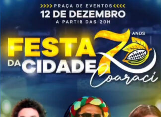 Com muitas atividades, a prefeitura de Coaraci lança o dia da Cidade. Comemorando 70 anos no próximo dia 12, os festejos contará shows com Anna Catarina, Edson Gomes e Jau.