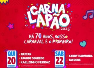 A Prefeitura de Lapão confirmou a programação oficial do Carnalapão 2025, um dos eventos mais tradicionais da região. A festa acontecerá nos dias 20, 21 e 23 de fevereiro, trazendo grandes artistas...