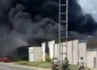 Fábrica de colchões pega fogo em Feira de Santana
