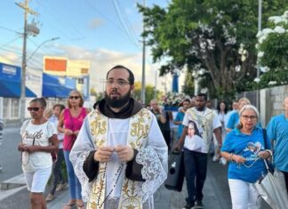 Conduzidos pelo reitor do Santuário Santa Dulce, Frei ícaro Rocha, os fiéis foram até a Igreja do Bonfim, em procissão