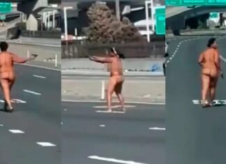 Mulher completamente nua atira contra carros no meio de avenida; assista