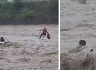 Um motorista passou por momentos desesperadores após ficar preso em seu carro durante uma enchente que atingiu a cidade de...
