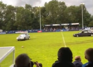 Um amistoso na Inglaterra foi suspenso após dois carros, sendo um deles funerário, invadirem o gramado.