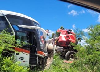 Carreta e ônibus colidem em grave acidente na BR-116 Norte